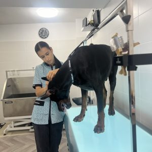 В нашия груминг салон предлагаме професионални услуги за всички породи, включително и едри кучета като немски овчарки, добермани, хъскита и други. Екипът ни е обучен да работи с внимание и грижа към специфичните нужди на големите породи, като използваме подходящи техники и оборудване за тяхното удобство и безопасност. Независимо от размера, всяко куче заслужава индивидуално внимание и качествена грижа – доверете се на нашия опит и професионализъм, за да се погрижим за вашия любимец.